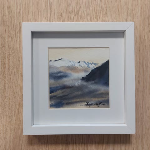 Akvarell med gullramme. Rammet inn hos rammemaker. Str. 30 x27cm. Signatur: Ingrid Hagen 85.