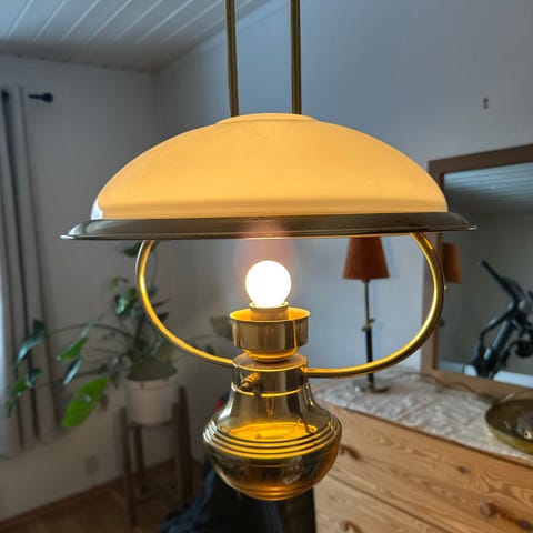 Taklampe i glass og messing