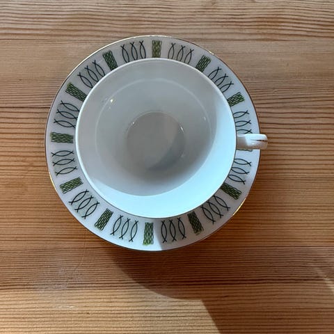 Selger kaffekopper med fat fra Royal fine China servise ☺️ disse er aldri brukt, så fremstår som ny og uten skade. Har allerede solgt resten av serviset så dette er det jeg har igjen.