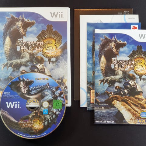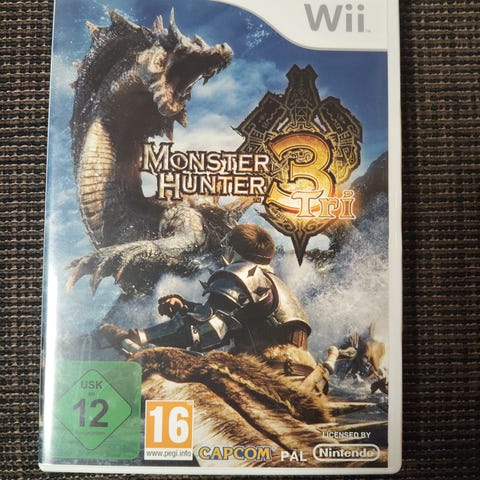 Monster Hunter 3 Tri for Nintendo Wii. I god stand. Overfladisk bruksslitasje på eske og manual. Tilnærmet ripefri disc.