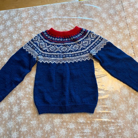 Hjemmestrikket Mariusgenser i ull.