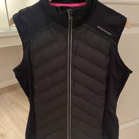 Liten skade på jakken, som er lappet over og synes ikke når den er lukket. I tillegg er noen cm av sømmen på nederste av glidelåsen gått opp (se bilde).