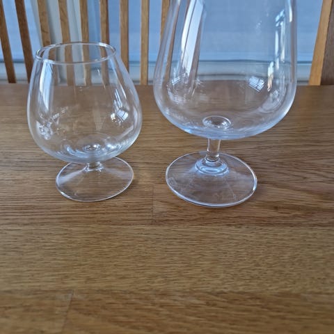 Selger et sett med 6 vakre cognac-/brandyglass laget av resirkulerte flasker.