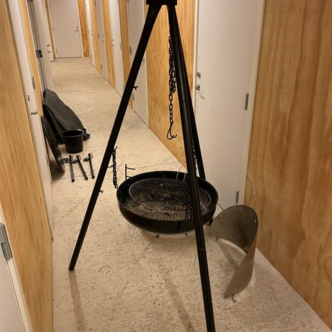 Meget pent brukt bålpanne. 60 cm. Ser nesten ny ut. Er mistet et feste til grillristen.
