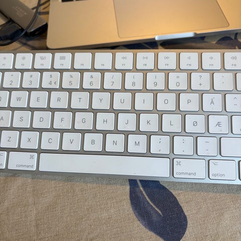 Apple Magic Keyboard i godt stand. Hvis kreves, kan vi legge til en lightning kabel.