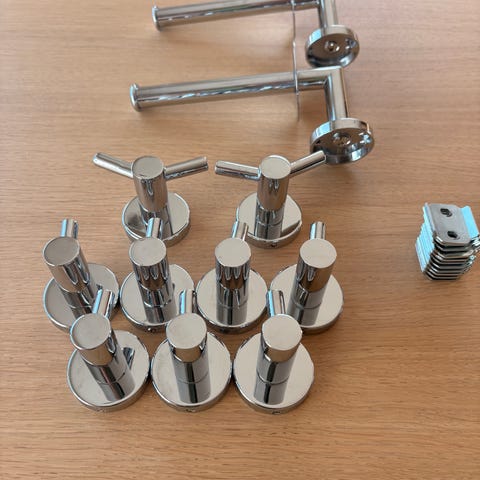 Ubrukt og litt brukt 10 stk dørhåndtakker av messing selges billig. 6 stk er ubrukt i eske 4 stk også ser som helg ny ut men tok fra pakke. 6 stk av messing og ser veldig solid ut .