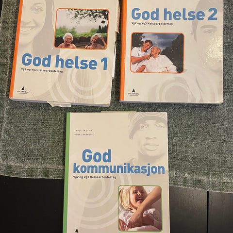 Tre fagbøker til VG1 helse- og sosialfag fra 2009: Om helse - På jobben - Vi samarbeider selges samlet til kr. 300,-