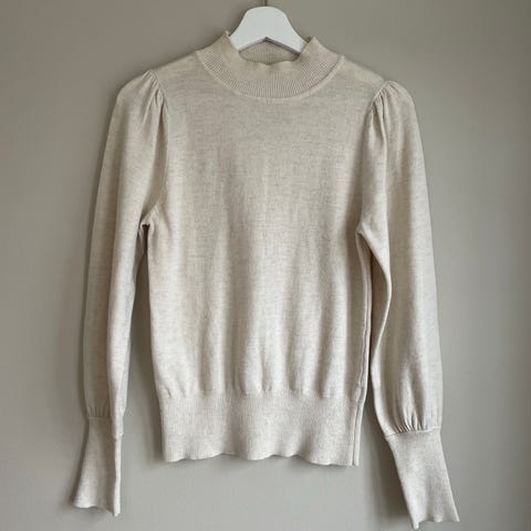 Kini genser/ topp fra Mark Kenly Domino Tan (MKDT) studio. 100 % merinoull. Lite brukt, men har fått en del nupper så jeg setter godt brukt. Den har behov for en runde med ullkam. Str M - veldig liten i størrelsen og jeg synes den passer til str S. Farge: ecru. Bytter gjerne til farge brun. Nypris: kr 2400,-