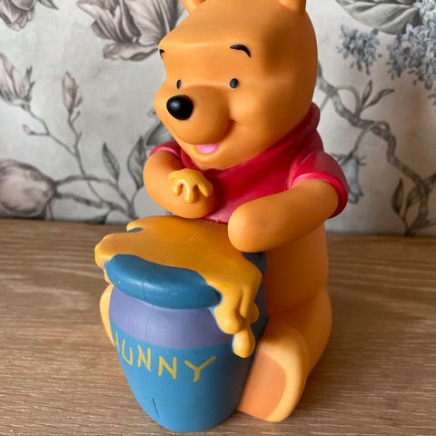 Ole brum bamse med genser. En flekk i bakhodet, ikkje prøvd å vaske vekk.