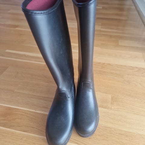 Pene og velholdte ridestøvler i gummi, størrelse Small 38.