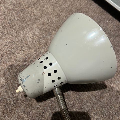 Grå LSA A101 Arkitektlampe, mangler bordklemme.
