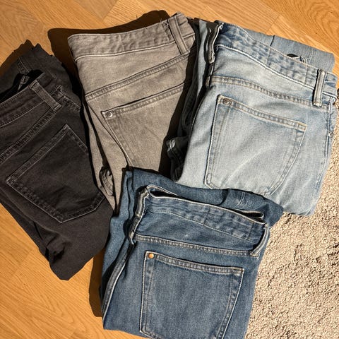 - Mørk blå jeans (Regular fit) fra H&m i str.29/32