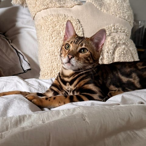 - Jeg har vokst opp med katter og har hatt katt i voksen alder i mer enn 8 år. Nå deler jeg livet med en herlig og supersosial bengal-jente, så jeg har erfaring med katter som krever mye aktivisering, kos og oppmerksomhet.