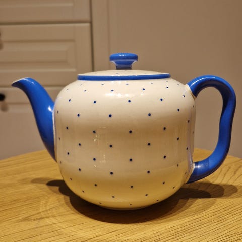 Flott, gammel tekanne fra Villeroy & Boch Luxemburg selges kr 500. Ingen krakeleringer. En «feil» på kanten, men det ser ut som det er under glasuren.