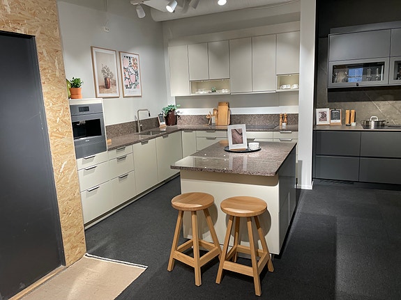Utstillingsprisen inkluderer alle møbler, benkeplate, vask.