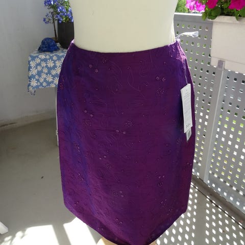 Selger mitt flotte klokkeformede skjørt i ull fra Betty Barclay. Det rekker ca til knærne (jeg er 1.72 høy)
