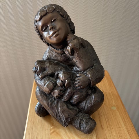 Skjønn Austin Figur, ett barn som sitter å leser for hunden sin.