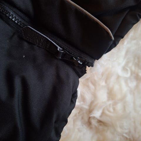 Noen små mørke flekker jeg ikke får bort med vann nede på venstre siden av posen. Ellers er denne pent og lite brukt av oss i en kort periode. Kjøpte den selv pent brukt av et barn.