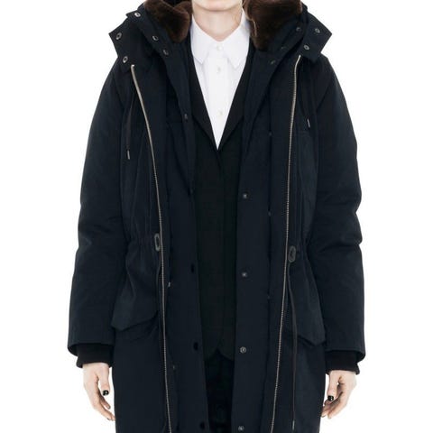 The York Down Jacket is made from polyester with down filling and is designed to keep you warm during dry, cold weather conditions. Features a detachable faux fur collar and self-tie drawstrings that gather around the waist. Detailed with front patch pockets, a chest pocket as well as a concealed zip and button placket. Designed for an oversized fit that allows for easy layering underneath.