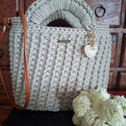 Nylig strikket beige håndveske