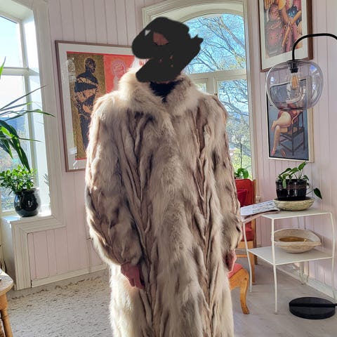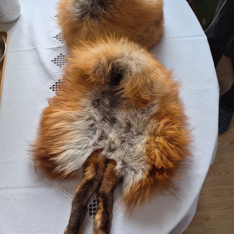 Ekte blårev eller fjell rev hatt og sjal sett (tørkle) selges samlet. Størrelse på hatten er M i hattestørrelse.