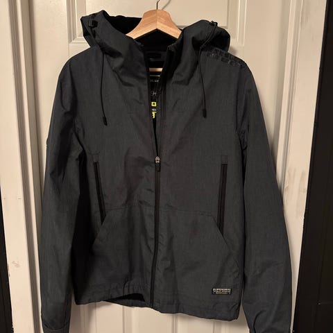 Jakken heter Superdry windcheater, den er vindtett og nokså vanntett og veldig god til bruk vår, vinter og høst.