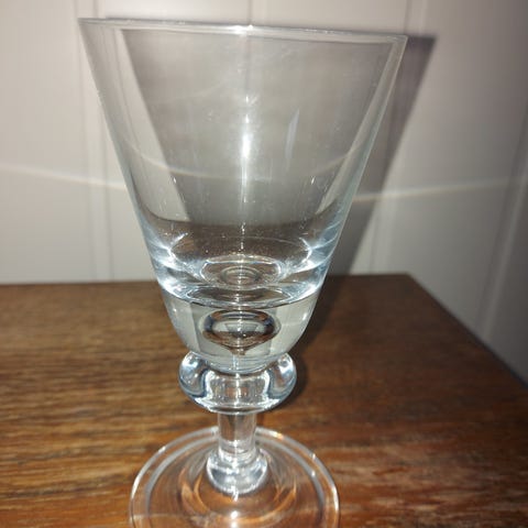 Hvitvinsglass 9 stk i resirkulert glass. Litt forskjell på høyden da de er håndlaget. Ca 24cm høye.