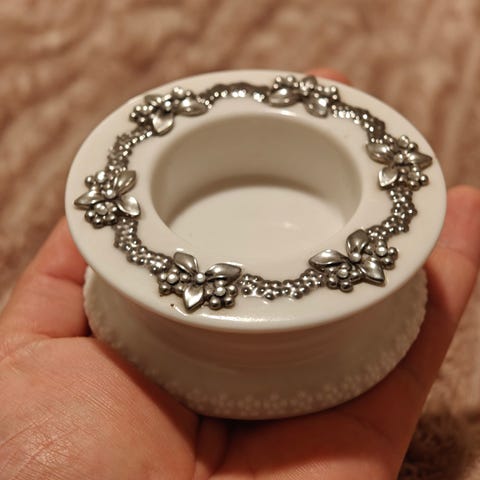 Har en liten flekk ,❤️men ikke noe av betydning. denne er for telys. Jeg kan sende med Post Nord porto blir 69kr..Jeg har flere annonser her inne kan samsende om du finner noe mer.❤️❤️❤️