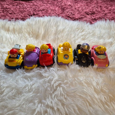 3 lekebiler fra Little People. 2 stk ca 7 cm lang + 1 stk bil 10-11 cm. Sjåfør i de to med lik størrelse, den tredje mangler. Hentes eller s
