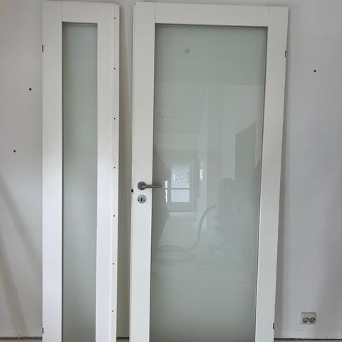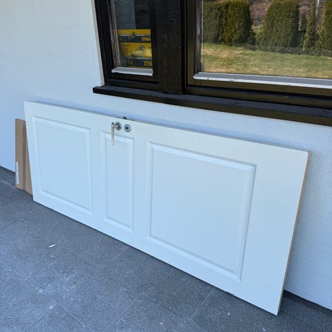 3 stk dørblad for 80- dør gis bort. Må hentes. Har vært brukt som 2 V og 1 H men kan brukes begge veier. Gråmalt, ene siden er pålimt staffasje.