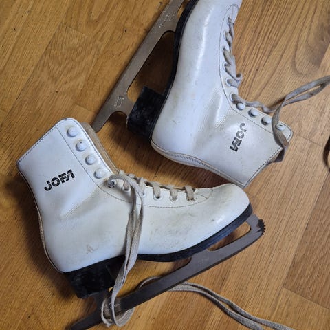 Ok stand. Er lite brukt, men har stått lagret noen år. Trenger å slipes og nye lisser. Størrelse 38.