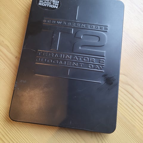 Til salgs er en limitert og nummerert utgave av James Cameron sin film Terminator 2: Judgment Day. Denne kommer i et standard keep case huset i et ikke fult så standard metallcover. Dette er en PAL/Region 2 utgivelse, som er samme som vi har her i Norge. Den har engelske undertekster. DVD og etui er som nye, mens metallboksen kun har litt merker langs kanten som det er vedlagt et bildeeksempel av.