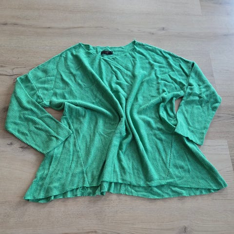 Dette er en deilig, komfortabel, oversize genser fra Pepper-Made in Italy, som er laget av viskose og ull. Den henger veldig pent og har et hyggelig motiv med blomster i grått og gull. Passer størrelse fra M-XL.