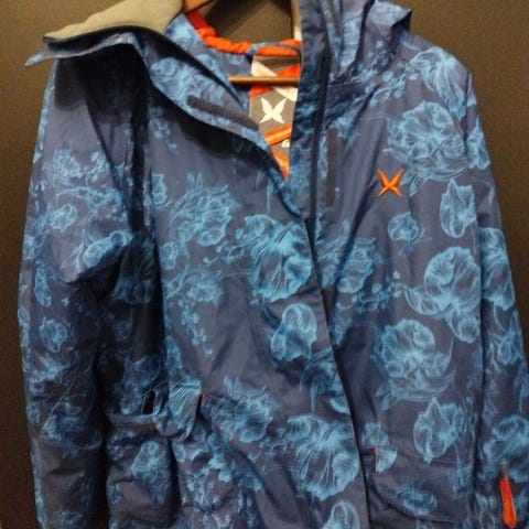 Kari Traa jakke str M - blå m rød innerside. Har store lommer og mulighet for å snøre inn i livet