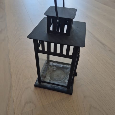 Kul lysholder i sort metall og glass for telys.