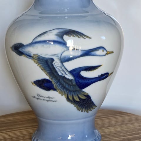 Signert blå liten vase Bavaria ca 12cm porselen. Selges kr 200,-(t16)
