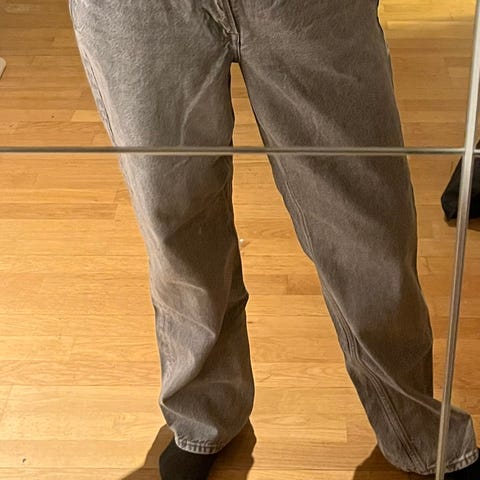 Lite brukt jeans med mid/lavt liv og vide ben fra H&M.