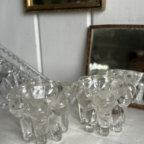 To lysestaker i glass, vintage