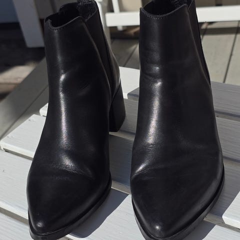 Lave støvletter i skinn. Strikk på hver side, så de er enkle å ta på. Selger de da jeg har for mange sko.