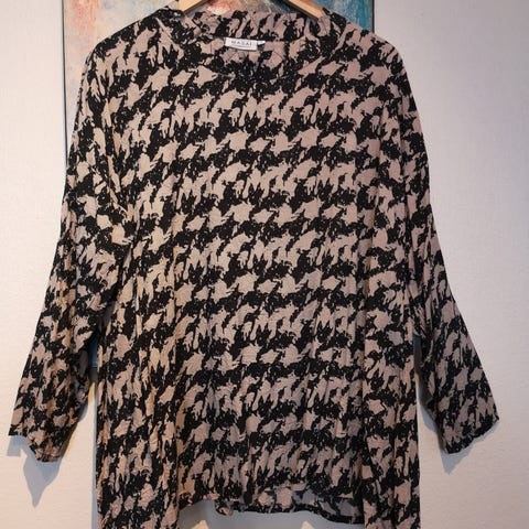 Midje : ca. 80 cm, og går opp p.g.a. strikk til 100 cm.
