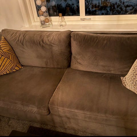 To stk 3-seter Miami sofaer i velour brown (brun/grå) selges. Sofaene er fantastisk gode både i komfort og stoff, men må dessverre videre da de er for store for oss. Kjøpt på Moodies i Asker. Godt brukte, men fortsatt flotte sofaer.