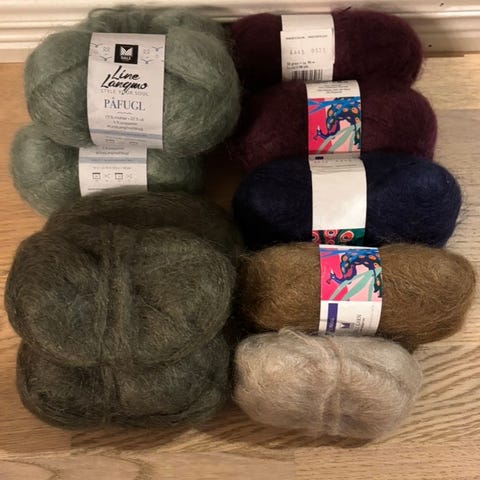 73% mohair, 22% ull, 5% polyamid.