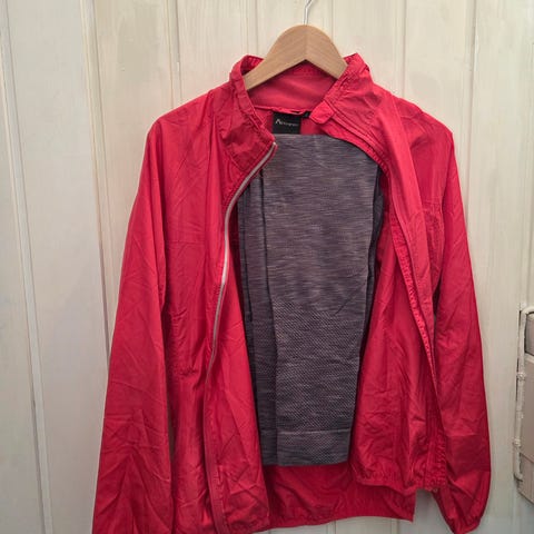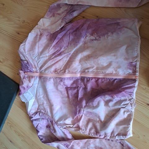 Pent brukt jakke, men merket foran har begynt å flasse av.
