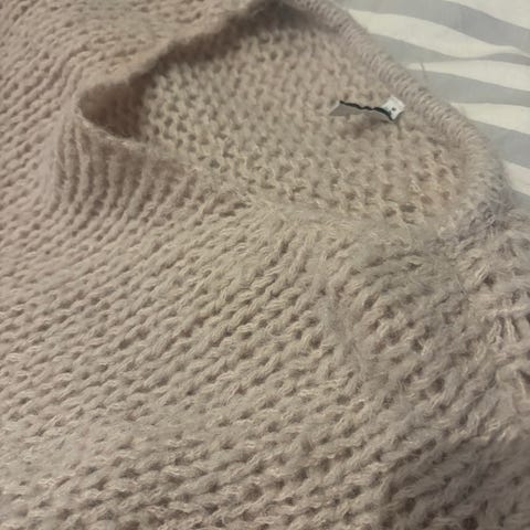 Selger en knallfin strikket genser i asiatisk str L, så er mer en str S. Denne ble kjøpt på Temu og er knallfin, men det er 3/4 armer istedet for lange så selger den videre.