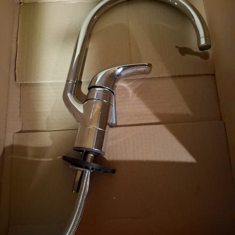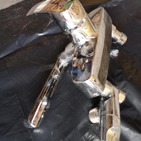 Pent brukt vaskeromskran i krom. Vegghengt med tut.