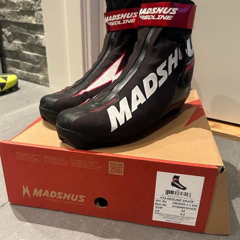 Nye og ubrukte Madshus F19 Redline Skate langrennsstøvler strl 39,5 selges. Støvlene passer til trening og konkurranse og er 3D støpt med integrert karbonsåle. Dette gir støvlene en ekstremt lav vekt. Også ankelstøtte i karbon.