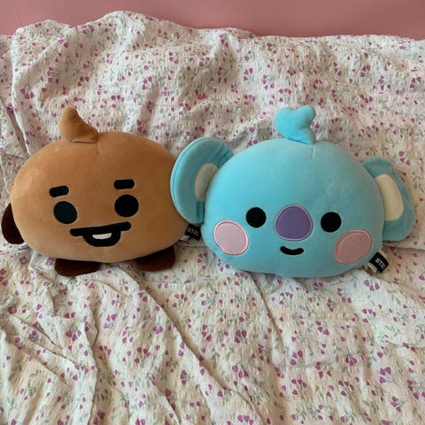 Selger to bt21 Halloween 2019 standing dolls av RJ og Mang. Begge er i fin stand utenom at sømmen på Mangs maske er røken slik at spøkelse masken sitter litt løst.