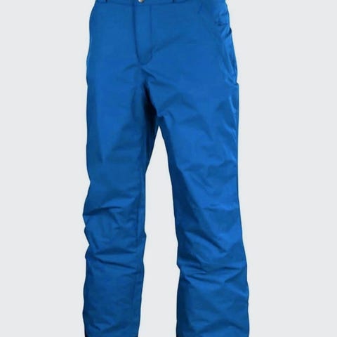 Columbia skibukse for dame i størrelse M. Buksen er lys blå og laget i et materiale som egner seg til vinter- og skibruk. Den har justerbar midje og lommer med glidelås.