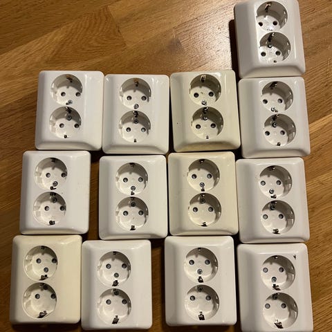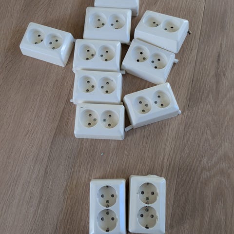 Stikkontakter enkle/doble, m/u jord 50 kr stk.