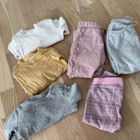 Klær fra Newbie, Hummel, That’s mine, Huttelihut, Cubus og Watery. Settet fra Hummel er ubrukt